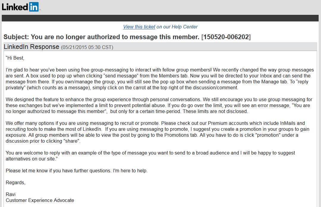 b. you can contact LinkedIn support and ask them why you can’t send group messages manually from regular browser and asking to remove limitations from account.